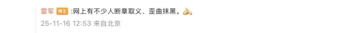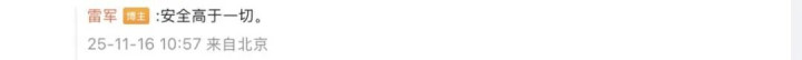 在微博中,附上他于2023年和2024年发布的四则微博截图,称“这是小米SU7发布之前我发的微博,我谈对安全的理解和SU7的研发标准。”