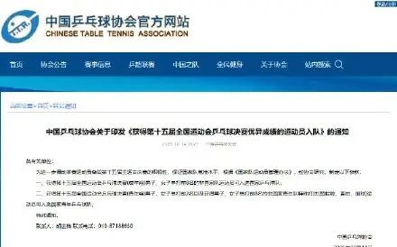 一是获得第十五届全国运动会乒乓球决赛(成年组)男子、女子单打前8名的非国家队运动员可入选国家乒乓球队;